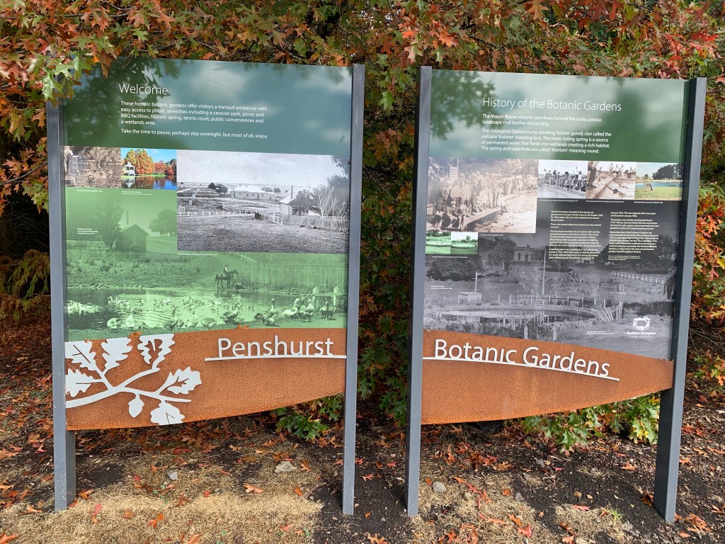 If you’re able to enlarge the picture of the signs above you will see the gardens were constructed around a natural spring. I suppose it would be accurate to say most towns and cities, and by extension their first public gardens, are built near, or on, a water source. The development of these botanic gardens over the decades of European settlement seem to have benefited greatly from having such a permanent source of H2O.