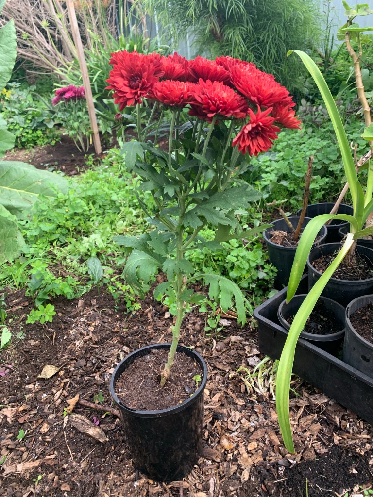 One side effect of Mother’s Day is the leftover potted Chrysanthemums.