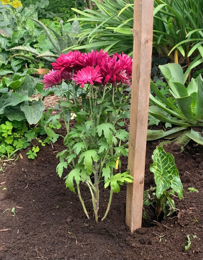 If you choose to put them in the garden I recommend putting a stake in at the same time. The reason for the stake is to tie next year’s growth to so the stems stay upright, or they tend to flounce all over the place. When the stems aren’t upright the flowers start to head upright and you’re left with ‘bent’ stems. Sometimes these can be incorporated into a flower arrangements but more often than not you have to cut them shorter; not useful.