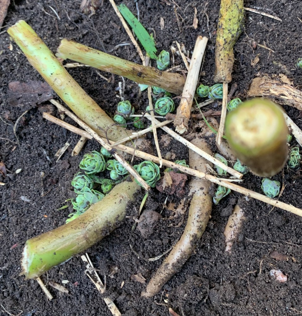 These will grow into new plants as well, so what I do is take some off what will be the ‘bottom’ of the stem then place the stem lengthways into a shallow ‘trough’ and back fill. Bob may be your uncle yet again.