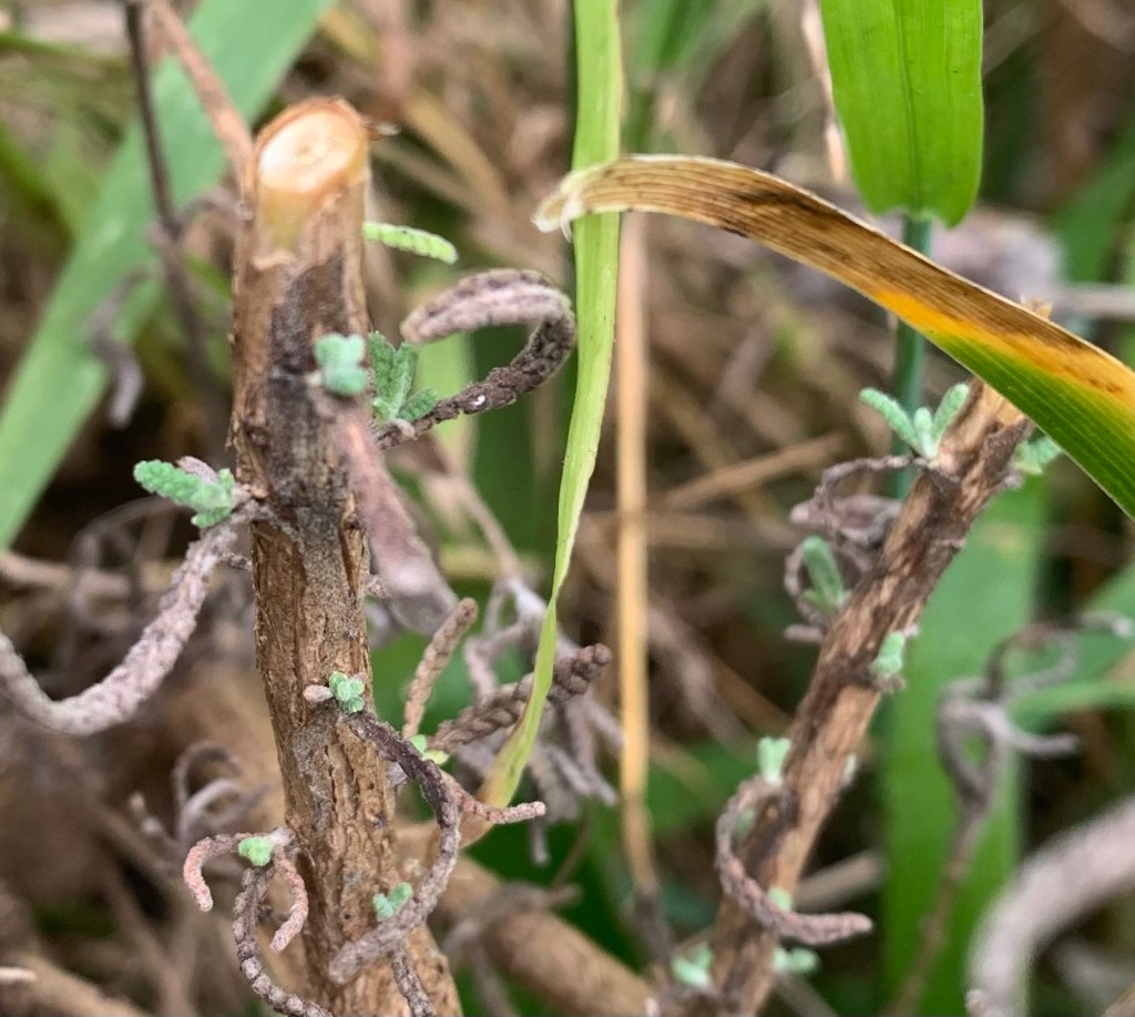 One thing to keep in mind is shrubs like the ones I mentioned above may not grow back from stems that have been cut hard so always try to find some new growth and cut back to there (pictured below) If there’s no new growth then remember it may not grow back and keep this in mind when you’re planning its future shape.