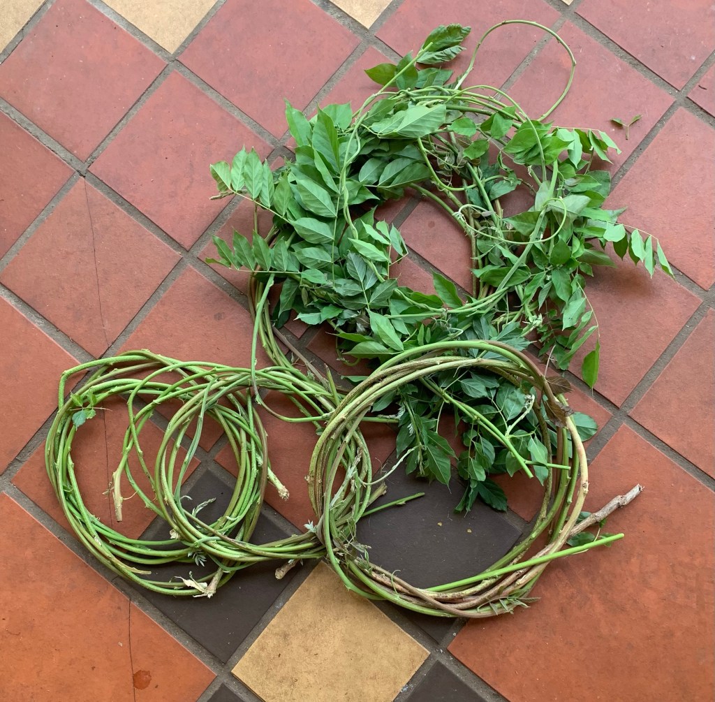 One thing I do which can be a fun hobby is to collect these tendrils and form them into wreaths which can be decorated for Christmas. Or just decorated merely to look pretty.